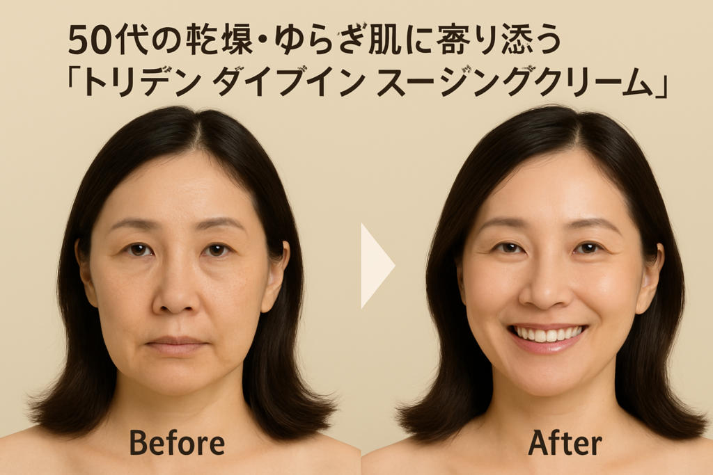 年齢を重ねると、肌のうるおいが急に抜けやすくなったり、季節の変わり目にピリつきやすくなったりと、“乾燥 × ゆらぎ”が同時に出てくるのが50代のお悩みの特徴です。 そんな大人肌に寄り添う韓国クリームとして人気なのが、トリデン(TRIDEN)ダイブイン ...