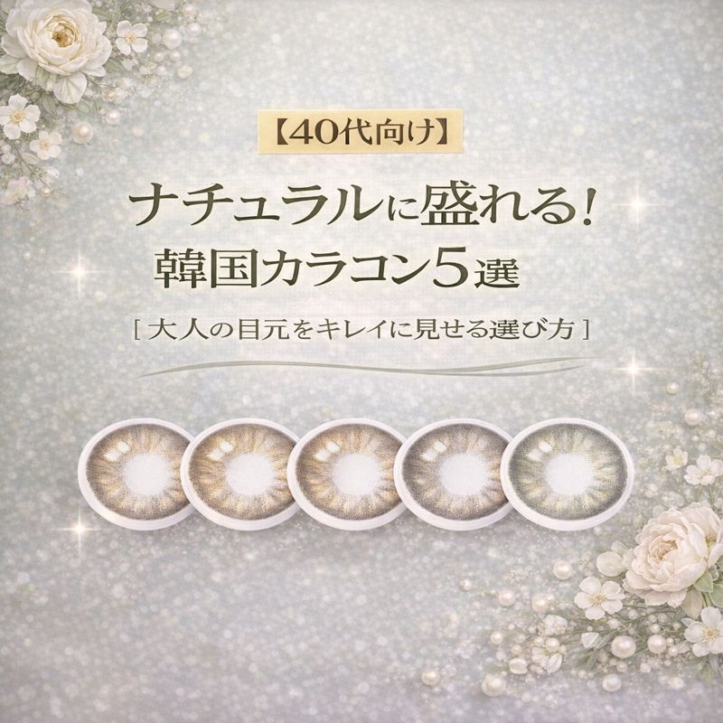 最近、「カラコンに興味はあるけど、40代で派手に見えないか不安…」という声がすごく多いです。実は40代こそ、“ほんのり透明感を足すだけ”で一気に若見えします。 ここでは、大人でも自然に盛れる・清潔感がある・上品な仕上がりこの3つを満たすカラコンだ... -